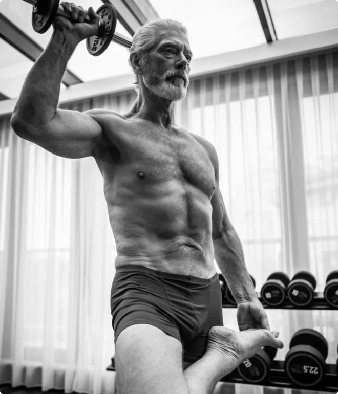 73 岁的他,身材依旧保持着清晰的腹肌和结实的臂膀,动作戏凌厉迅猛,完全看不出岁月的痕迹。
