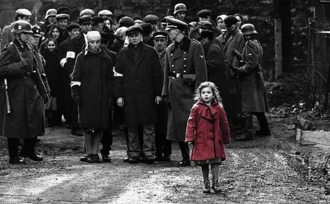 影片以黑白画面为主色调,营造出了一种压抑、沉重的氛围,真实地还原了二战时期纳粹对犹太人残酷迫害的历史场景。影片没有刻意渲染煽情的桥段,却用无数细节叩击人心:那个穿红色外套的小女孩在尸堆中穿行的镜头,成为黑白世界里唯一的亮色,既是生命的象征,也是B行下渺小个体的悲鸣;辛德勒在战争结束后崩溃嘶吼“我本可以救更多人”的瞬间,将人性的挣扎与救赎推向了极致——他的救赎从不是居高临下的施舍,而是亲历地狱后,对生命最本能的敬畏。
