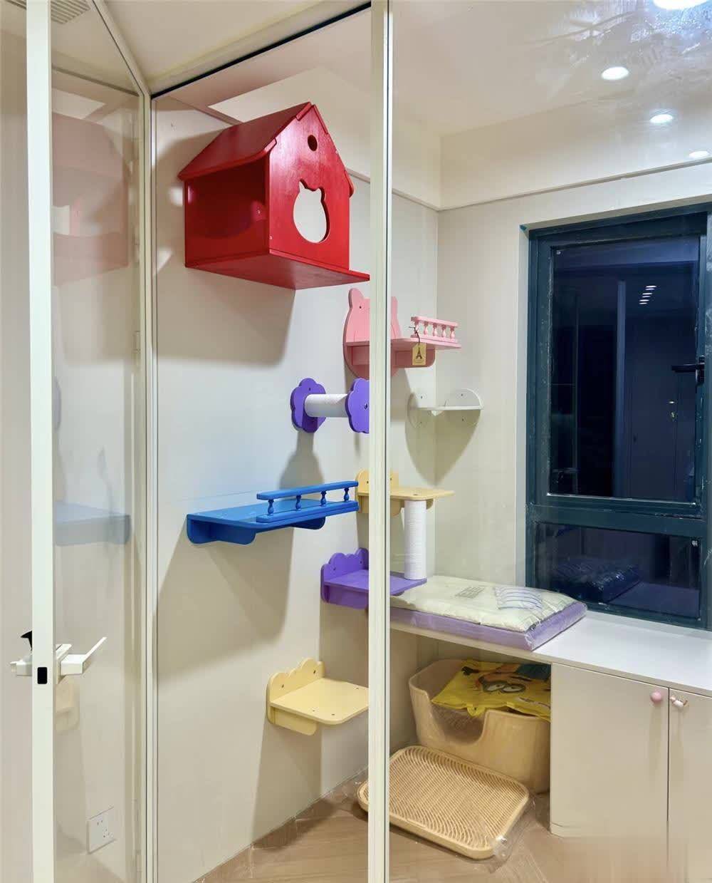 最近,我发现杭州姑娘(@哒哒啦啦)布置的猫房,完美解决了猫咪在家难打扫的问题,还有个能随时观察猫咪的玻璃间。