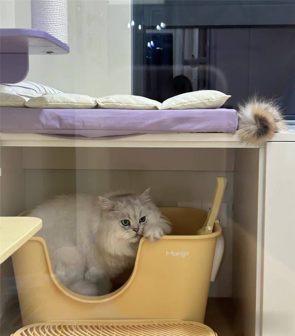 虽说面积仅4㎡,但猫咪用品齐全,猫咪住得开心,铲屎官打扫也方便。